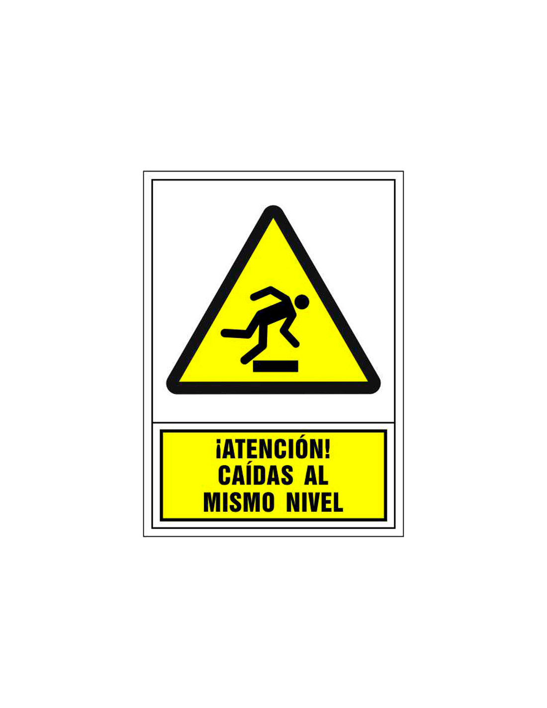 El pictograma de advertencia Atención! Caídas al Mismo Nivel es esencial para garantizar la seguridad en áreas propensas a accidentes por resbalones o tropezones. Fabricado con materiales resistentes y siguiendo normativas internacionales, proporciona una señalización clara y duradera para cualquier entorno.