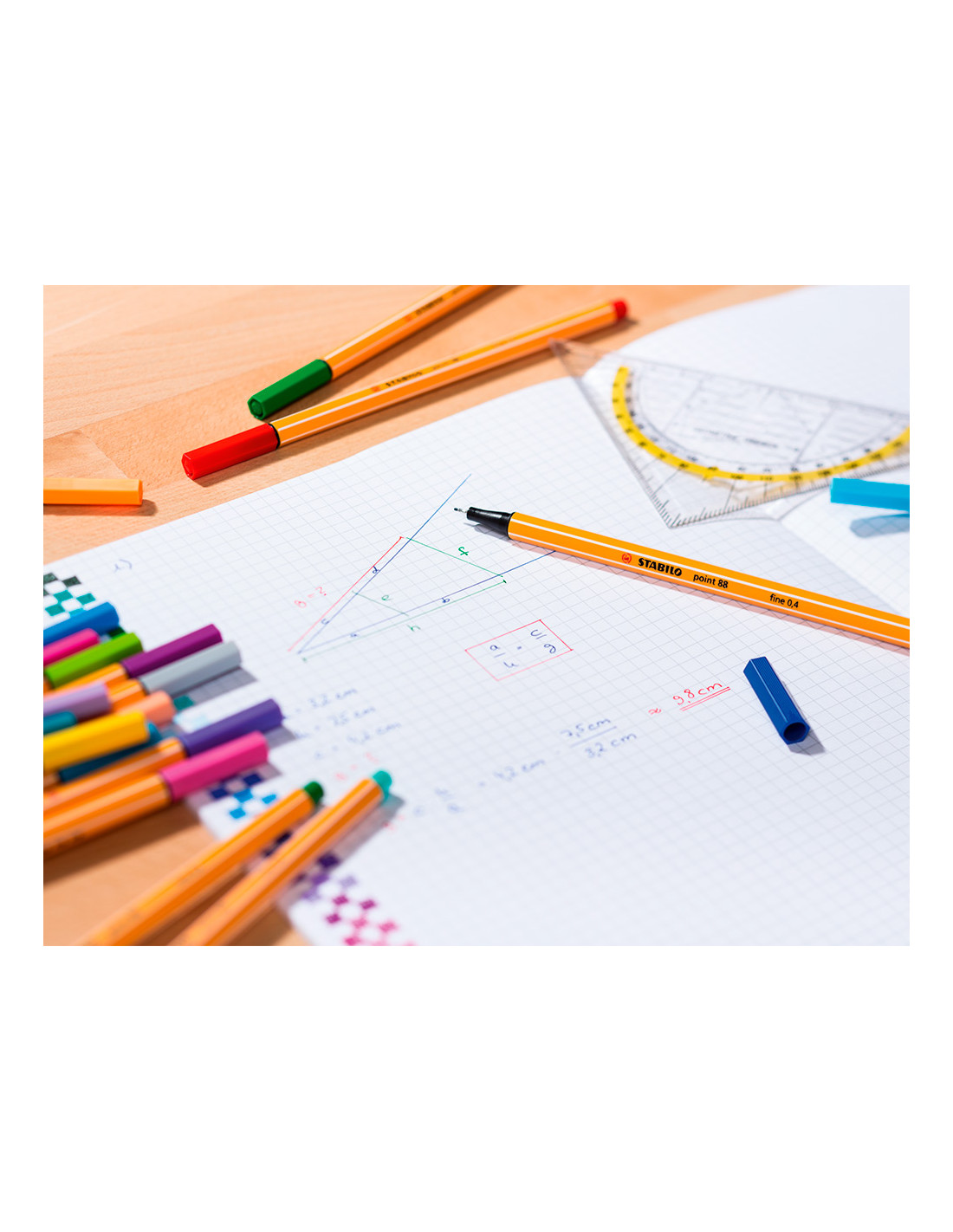 Rotulador Stabilo Punta de Fibra Point 88 Estuche de 10 Unidades Colores Surtidos El rotulador Stabilo Point 88 es uno de los instrumentos de escritura y dibujo más populares y reconocibles de la marca Stabilo. Este set en particular incluye 10 rotuladores de colores surtidos, ideal para una amplia variedad de usos, como escritura, dibujo, coloreado y trabajos de precisión.