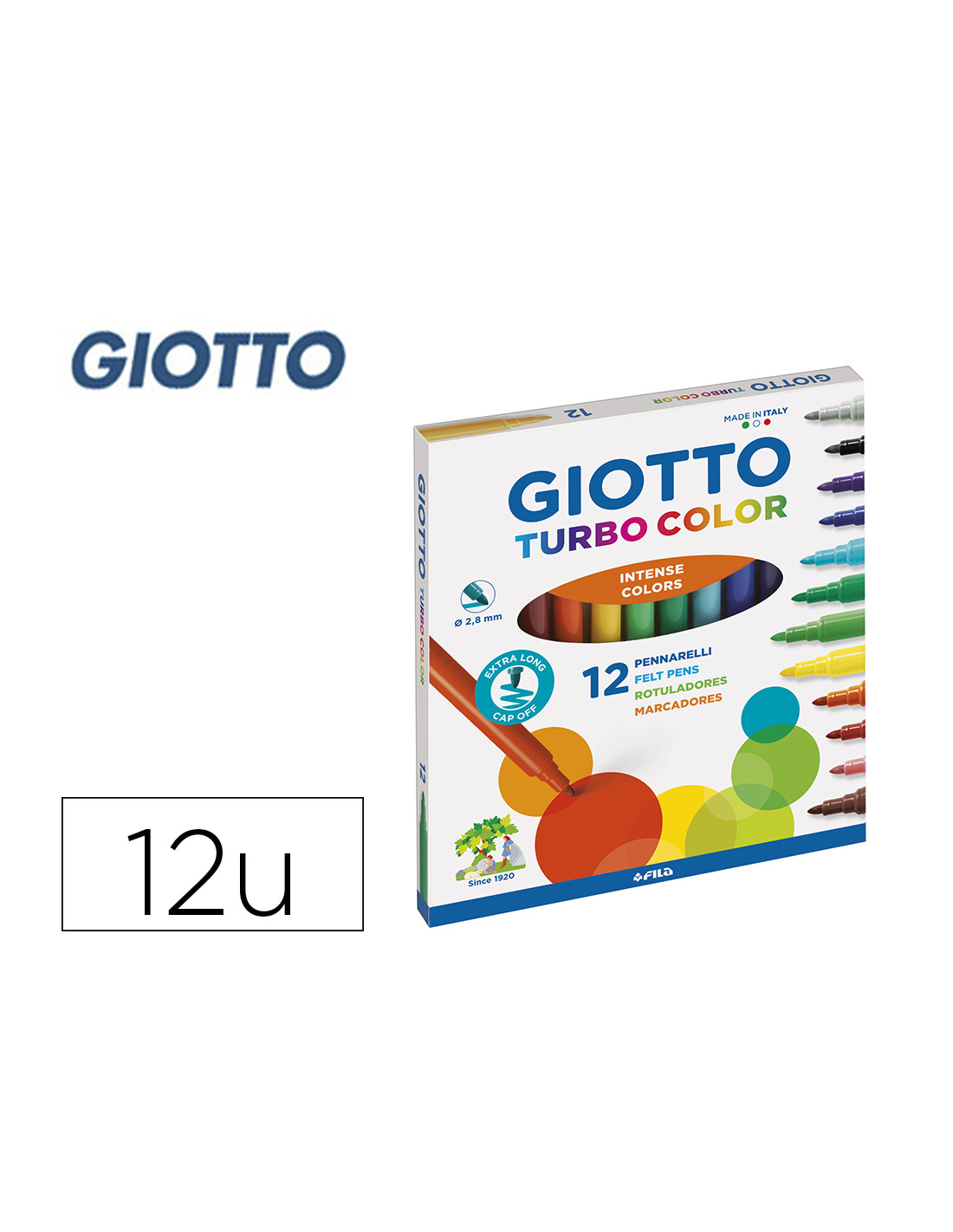 Los rotuladores Giotto Turbo Color son una opción ideal para quienes buscan calidad y seguridad en sus proyectos escolares y artísticos. Con una gama de 12 colores vibrantes y una punta bloqueada que garantiza durabilidad, estos rotuladores son perfectos para niños y adultos por igual.