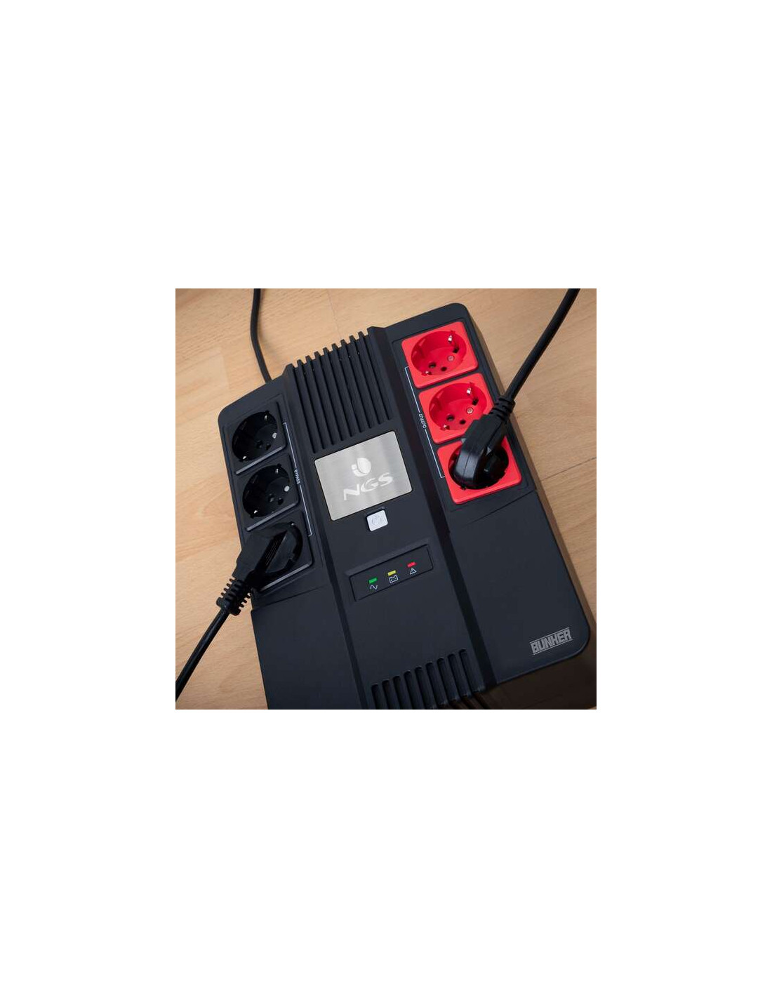NGS Fortress Bunker, es un SAI (sistema de alimentación ininterrumpida) de 600VA (360W) con batería de 12V/7 incorporada que asegura protección eléctrica completa en entornos ofimáticos neutralizando las nefastas consecuencias de las sobrecargas en la red y variaciones de tensión.