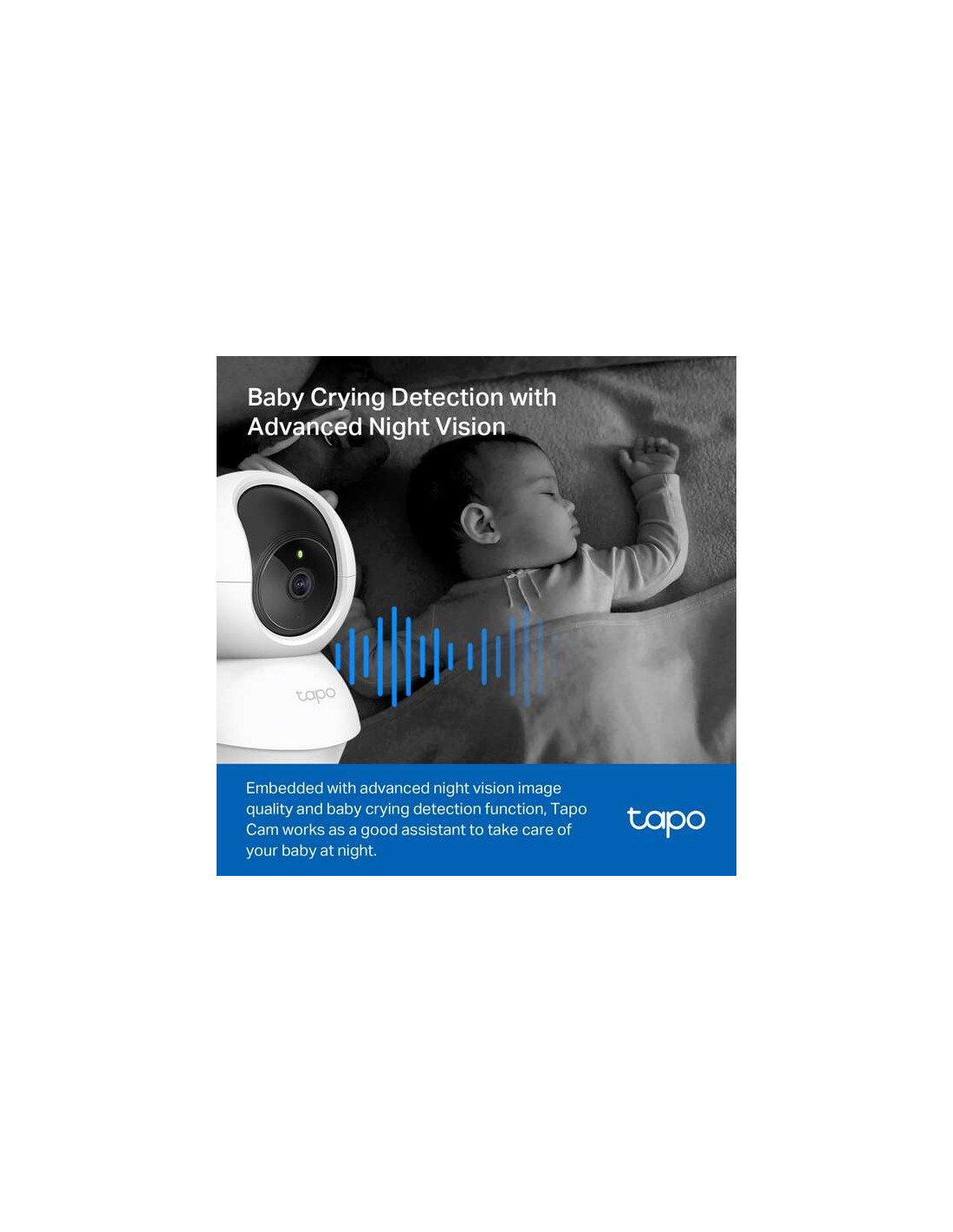 Equipada con visión nocturna avanzada y detección de llanto de bebé, la Cámara Tapo refuerza el cuidado de tu bebé las 24 horas del día.
