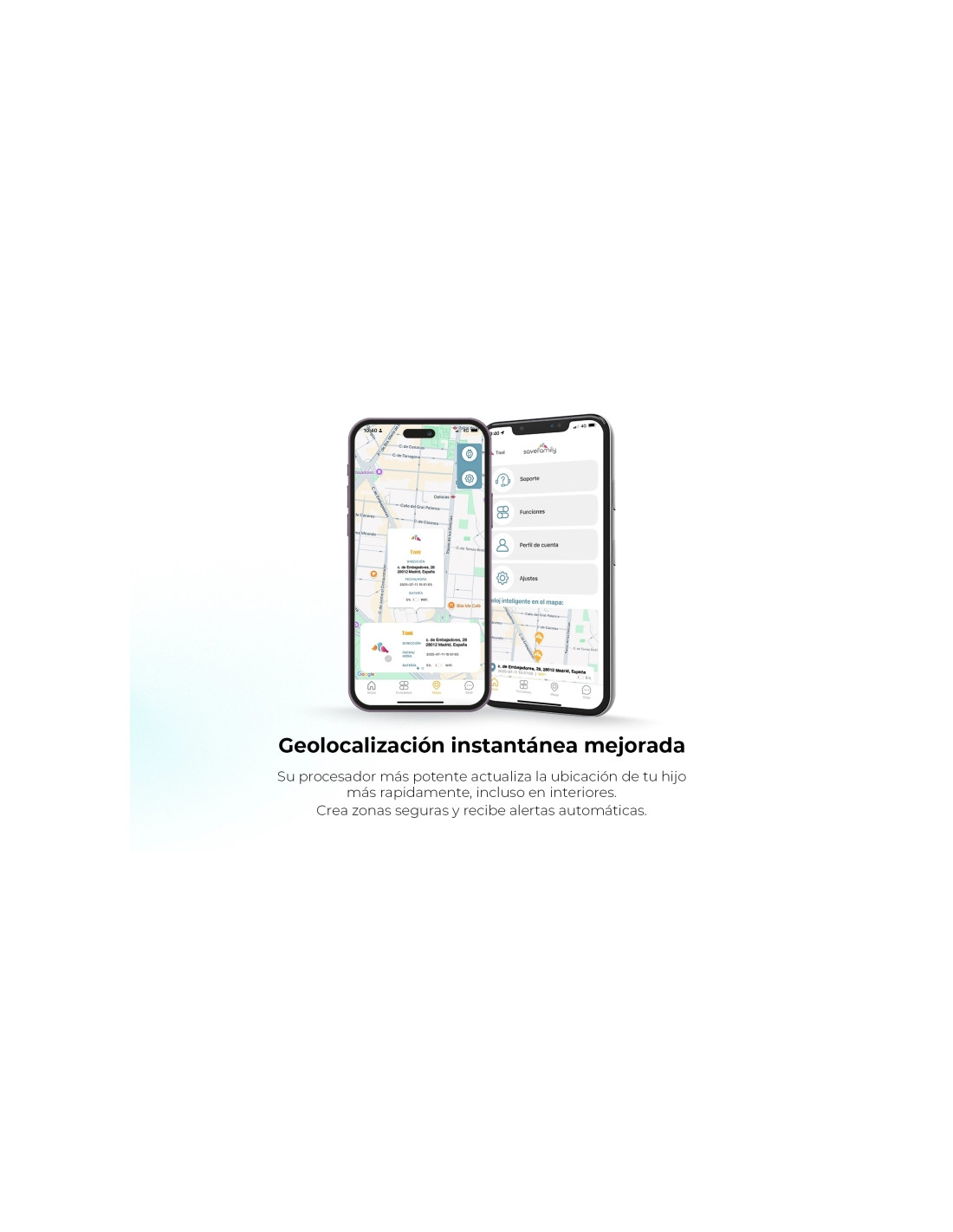 Acompaña a tu peque en tiempo real desde tu smartphone. Con la app SaveFamily puedes ver su ubicación, enviar mensajes, recibir alertas... todo de forma fácil y segura.