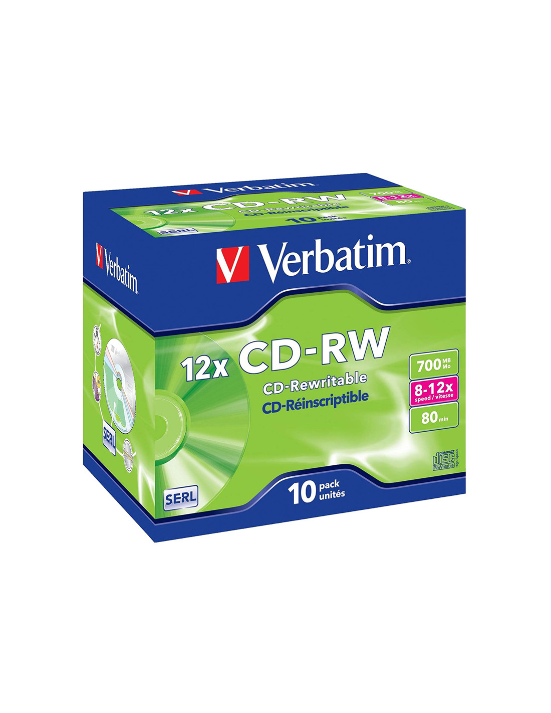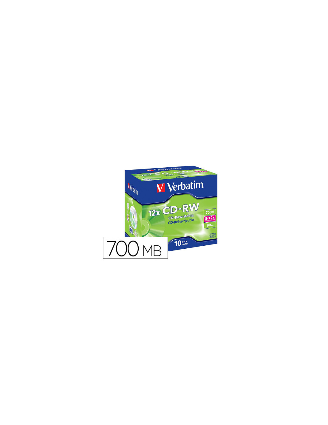 Cd-rw verbatim serl capacidad 700mb velocidad 12x 80 min pack de 10 unidades