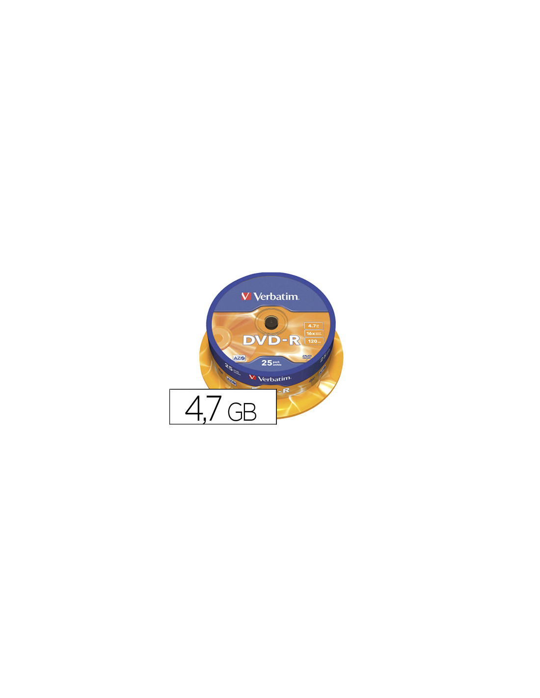 Dvd-r verbatim capacidad 4.7gb velocidad 16x 120 min tarrina de 25 unidades