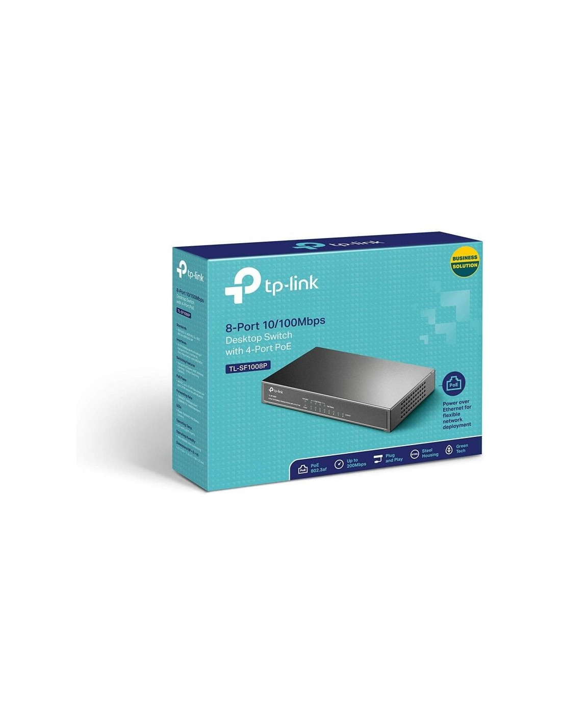El TL-SF1008P es un switch no gestionable de 8 puertos 10 / 100Mbps que no requiere configuración y ofrece 4 puertos PoE (Alimentación sobre Ethernet). Puede detectar automáticamente y suministrar energía a todos los dispositivos de potencia (PDs) que cumplan con IEEE 802.3af. En esta situación, la energía eléctrica se transmite junto con los datos en un único cable que le permite ampliar su red hacia donde no hay enchufes, donde desea fijar los dispositivos tales como puntos de acceso, cámaras IP, teléfonos IP, etc.