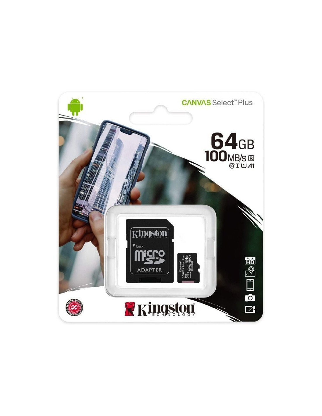 Las tarjetas microSD Canvas Select Plus de Kingston son compatibles con dispositivos Android y han sido diseñadas para un rendimiento de nivel A1. Se caracteriza por una mayor velocidad y capacidad para cargar más rápido las aplicaciones, así como para capturar imágenes y vídeos de múltiples capacidades. Excelentes en rendimiento, velocidad y durabilidad, las tarjeas microSD Canvas Select Plus han sido diseñadas para una alta fiabilidad al tomar fotos y filmar imágenes, así como para editar vídeos de alta definición. Las tarjetas Canvas de Kingston han sido sometidas a exhaustivas pruebas en los más rigurosos entornos y condiciones, con el objeto de que pueda llevarlas consigo con la confianza de que sus fotos, vídeos y archivos estarán protegidos. Disponibles con garantía vitalicia.- Velocidades de UHS-I Clase 10 de hasta 100 MB/s2