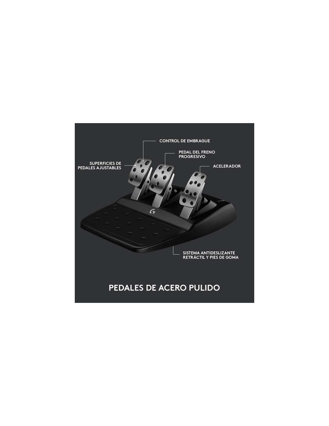 Pedal de freno progresivo.Mejor respuesta, mayor precisión. El resorte progresivo simula la respuesta del sistema de frenos sensibles a la presión para ofrecer una auténtica experiencia de carrera. Cambia la posición de las caras de los pedales para maniobras de talón puntera y tener aún más control.