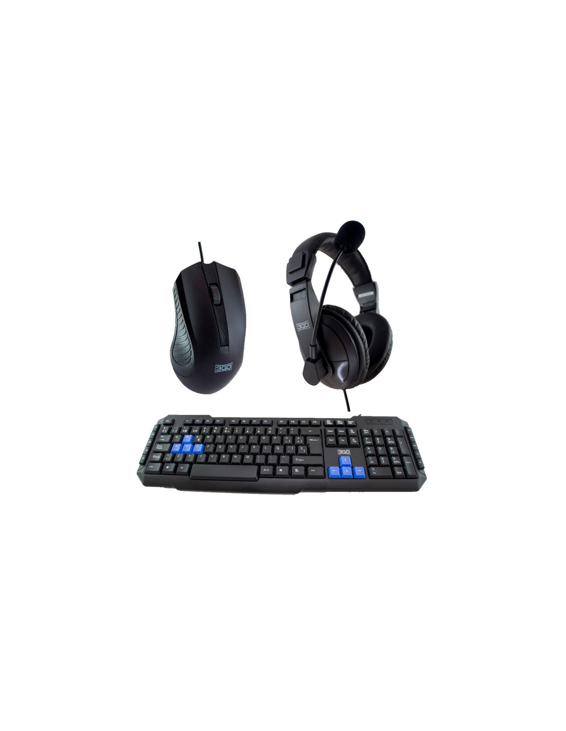 3Go Drile H2 Pack USB Teclado Multimedia + Raton 1000dpi 5 Botones + Auriculares con Microfono - Uso Ambidiestro - Color Negro