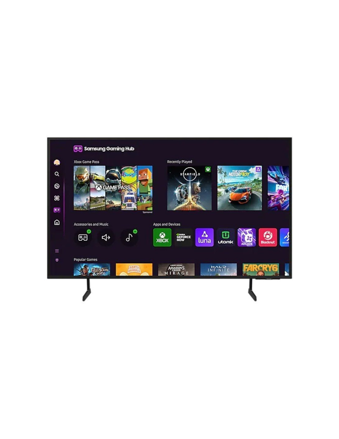 Aprovecha al máximo tu televisor con los últimos servicios y aplicaciones en Tizen OS. Disfrute de canales de TV en vivo gratuitos y miles de películas con Samsung TV Plus, y transmita juegos en Gaming Hub. Incluso puede administrar sus actividades diarias con Daily+ y controlar sus dispositivos inteligentes desde su televisor con SmartThings, todo mientras mantiene su privacidad con Knox Security.