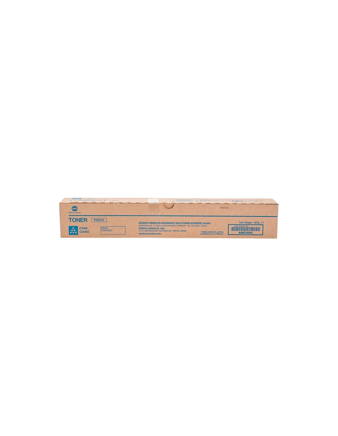 Cartucho de toner original Konica Minolta TN221 (TN221C/A8K3450) de alta calidad.